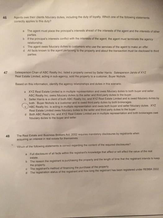 Solved Agents Owe Their Clients Fiduciary Duties Including Chegg Com